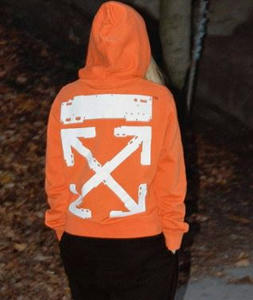 コレクションのメインとなるのは、オフ-ホワイト c/o ヴァージル アブローを象徴する“蛍光オレンジ”をキーカラーにした全4型のウェア。背面にクロスアローロゴを大胆に配したパーカー、複数のポケットを備えたボンバージャケットとパンツ、そしてグラフィック入りTシャツの4種類がラインナップされる。
